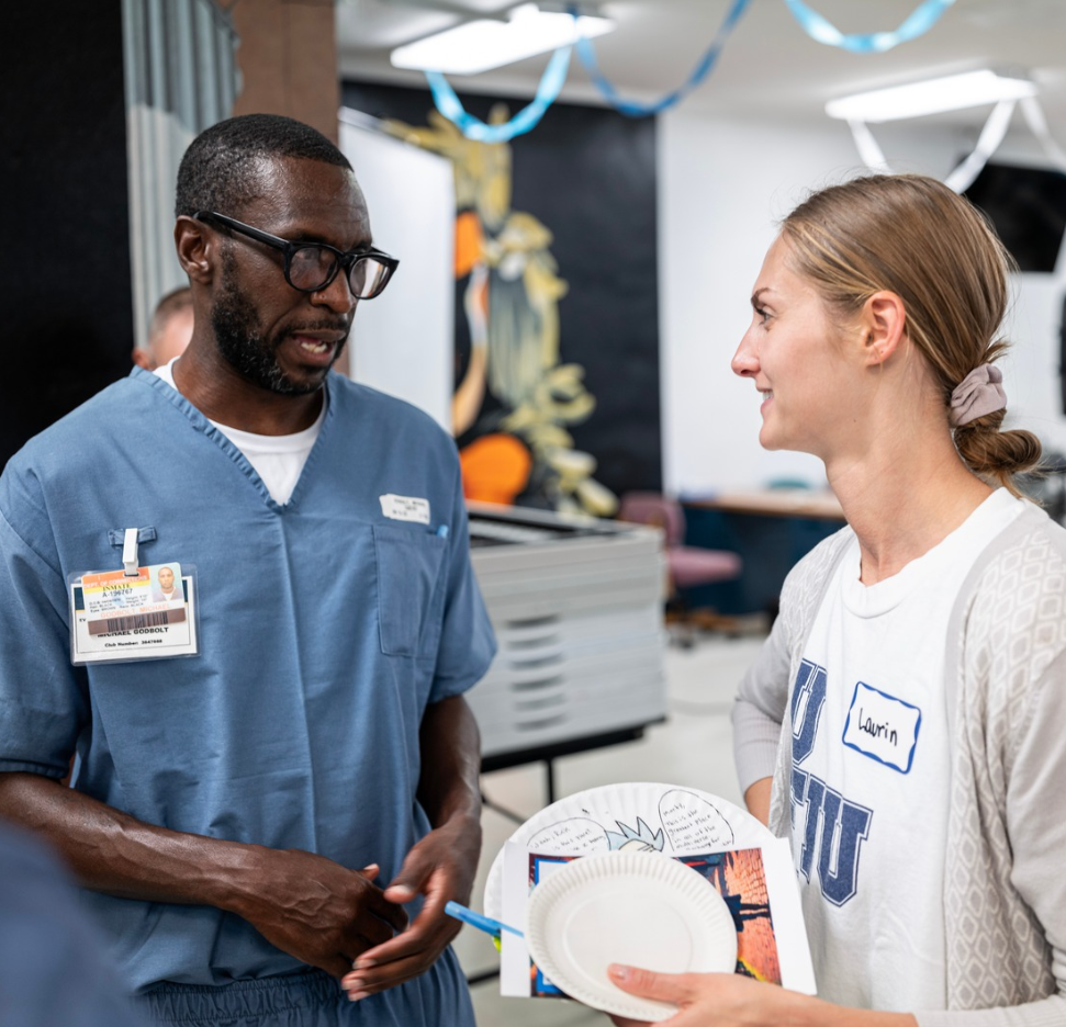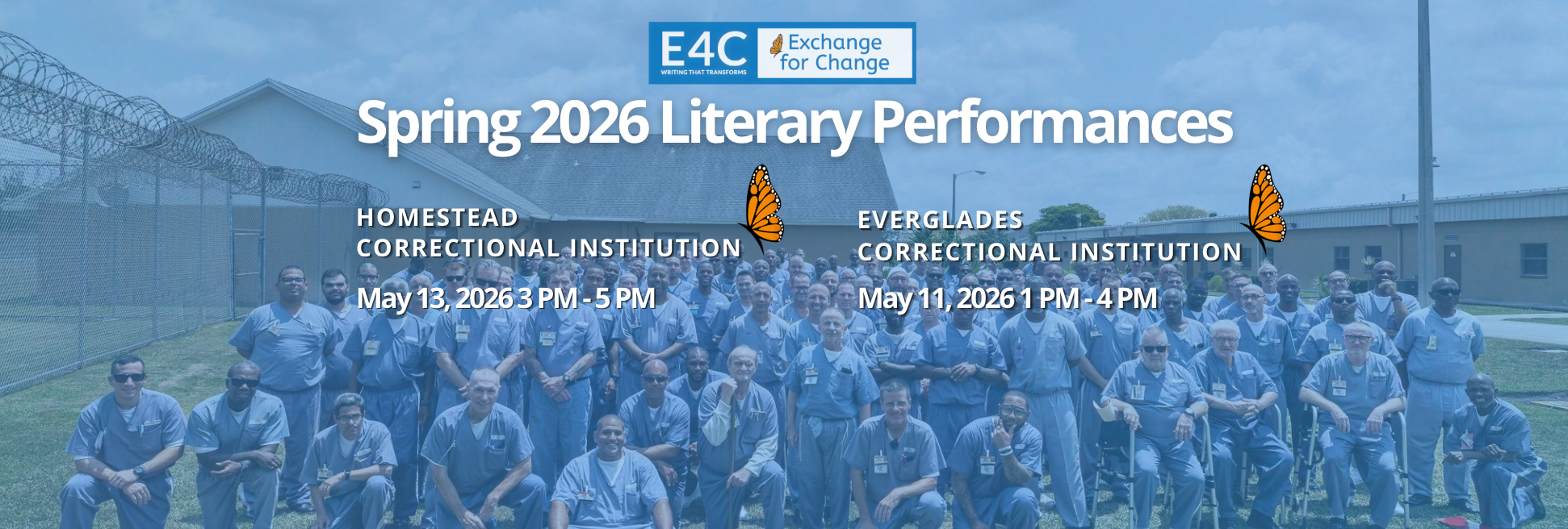 At the end of every semester, we invite the public to come into the prisons where we teach. In lieu of a ceremony, students perform works they crafted throughout the semester.